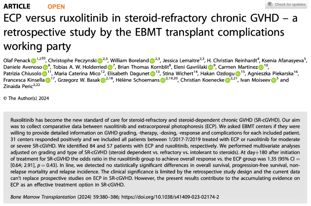 The retrospective study was published in Bone Marrow Transplantation earlier this year, and describes ‘ECP versus ruxolitinib in steroid-refractory chronic GvHD’.